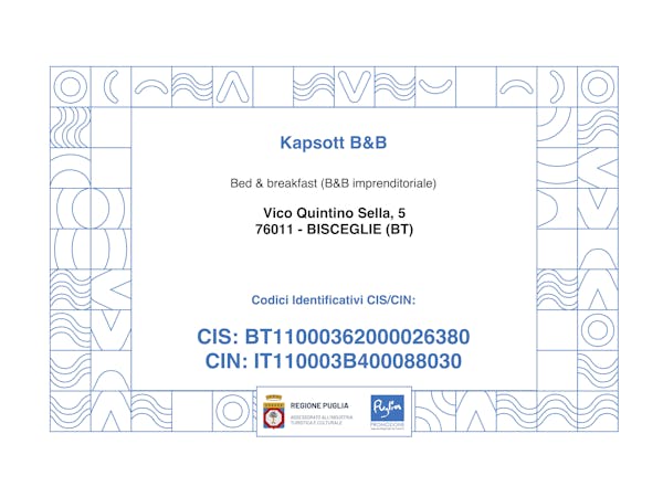 Inoltre è presente un mobilio dal design accattivante e divano letto. Il bagno privato con box doccia e le mattonelle in porcellana ricordano le costruzioni tipiche pugliesi. La camera è accessibile dalla scalinata principale del palazzo che permette di raggiungere anche il terrazzo del Kapsott con vista sull’intera città.