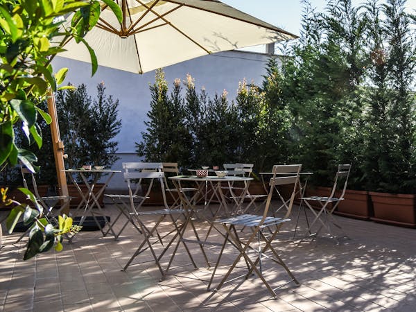 Suggestiva la Superior Room con la sua volta a botte, evoca la sua origine di antico granaio sopra le scuderie. Si accede indipendentemente dalla scala in ferro battuto decorata con fioriere all’italiana.